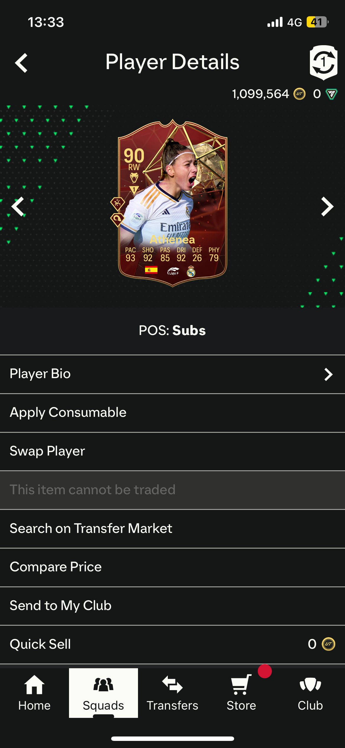 The problem is that a card I have evolved twice (Red Champs / Future Stars Evo) Athenea- I am unable to start a game with her in my starting XI. This happens with no other player at no other time but when she’s in the starting XI the game will automatically disconnect just before it starts.
