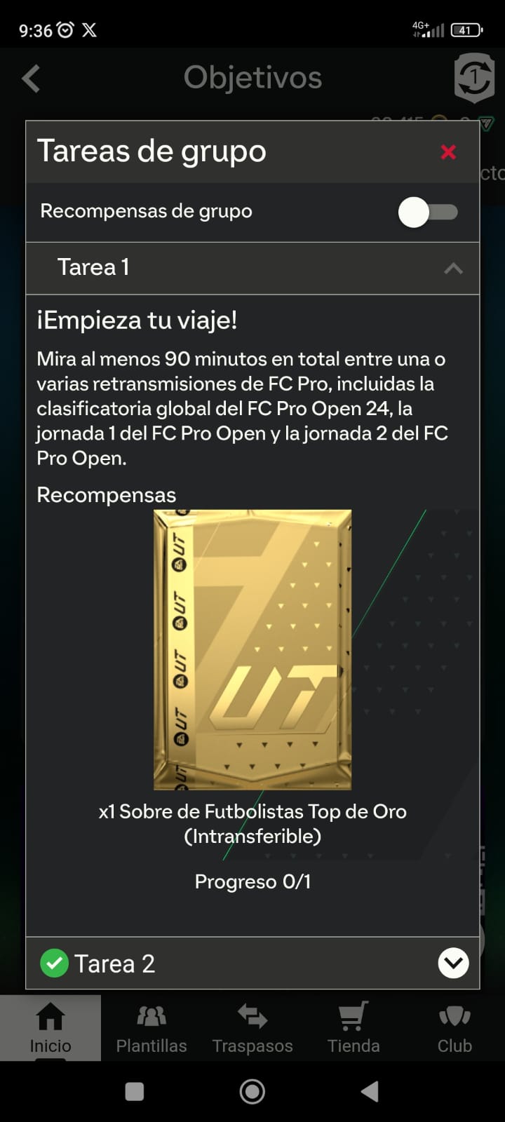 Es necesario completar el objetivo para acabar de completar el objetivo de grupo y obtener, por tanto, el Sobre Jumbo Premium y el sobre de 5 jugadores Oro Únicos +83.