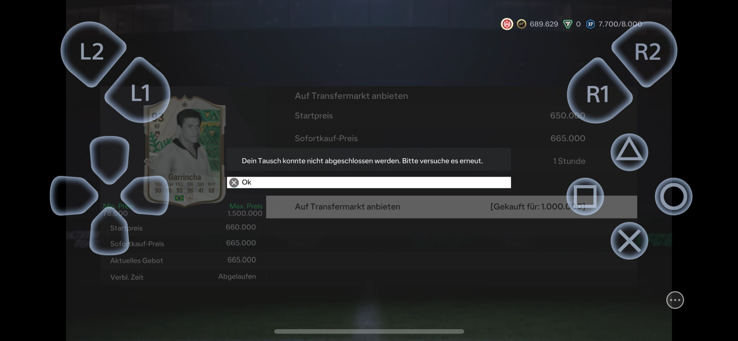 im Spiel EA FC 24 habe ich heute morgen den 04.04.2024 um 06:45 an der Playstation 5 sowie an der Companion App festgestellt, dass ich meine Garrincha Winterwildcards bei nicht verkauften Objekten ist, trotz einem abgegebenen Angebot, welches dem Sofortkaufpreis entspricht, jedoch habe ich weder die Coins erhalten, noch kann ich mit der Karte was machen. Ich habe versucht die Karte erneut anzubieten, jedoch wirft mich das Spiel dann aus dem Ultimate Team Modus raus und wenn ich die Karte in mein Verein zurück holen möchte passiert nichts. Zuvor konnte ich 2 Tage nicht in mein Account rein, da ich von einem Bug betroffen war, das es mir nicht ermöglich hat mich anzumelden, das wurde jedoch behoben und während dieser Zeit wurde meine Karte per Sofortkauf eigentlich gekauft. Kann mir jemand eventuell sagen wie ich das Problem gelöst bekomme oder wieso ich mit der Karte nichts machen kann und ob es mit dem Anmelde Bug zusammenhängt? Den EA Support habe ich bereits kontaktiert, die meinten ich soll es mal hier ansprechen.