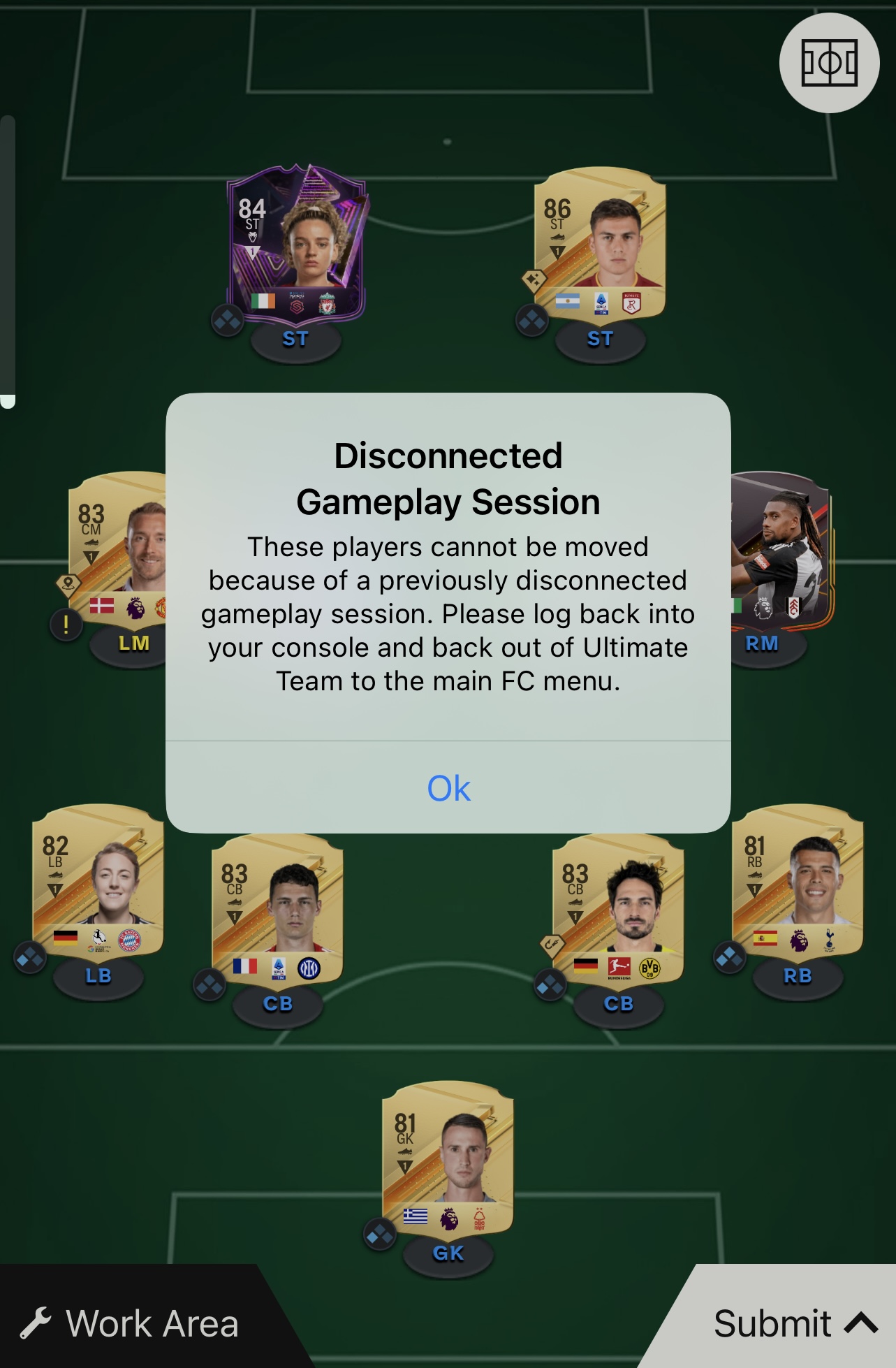 When I try to access the FC24 companion app, I get an error message which reads ‘Disconnected Gameplay Session’ - these players cannot be moved… please log back in to your console.