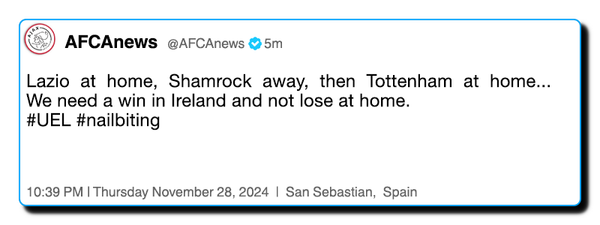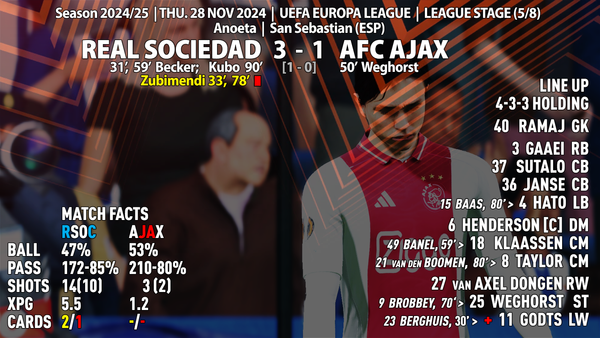 Maduro is right, by the way. A win is a win, and Ajax are on the right track with two 2-1 wins there. But if one wants to be in a title race, one also needs to win some of these games more comfortably. And the start you've had in Europe also tells a tale of a team that needs more work.