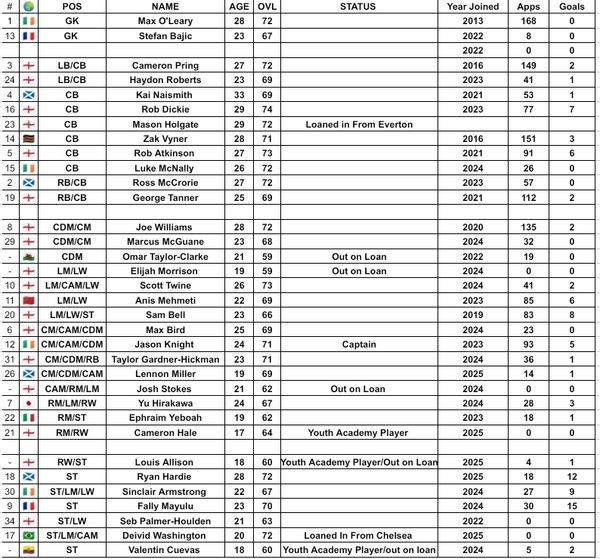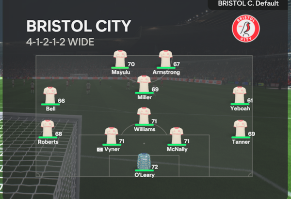 Whilst the defence appear to be quite solid in terms of OVR, your midfield may be a bit under par. But that does also provide an opportunity for you to deploy teenagers Hale and Yeboah on the right wing, supplemented by the Japanese fellow. Sometimes OVR isn't everything. I expect that at least one of these youngsters could have a breakthrough season at Ashton Gate.