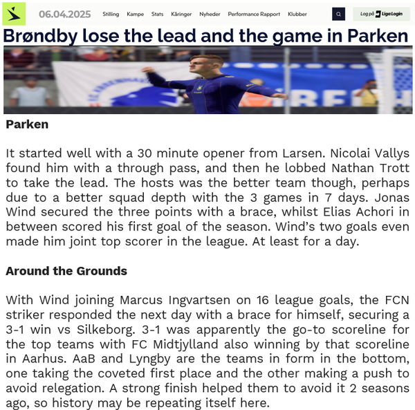 Glad to learn he's in high regard. I thought it was a coup to get him on a free transfer this summer, but I just didn't know the magnitude of it, having no knowledge about the player beforehand. Sounds like he could be an asset for Brøndby, both here and in real life.