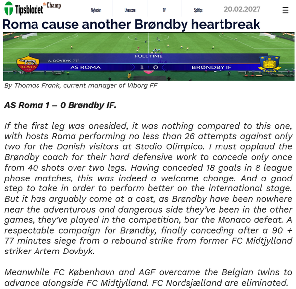 @Danimal5981 wrote:Impressive: all Danish clubs survive the league stage - all five go to the preliminary round