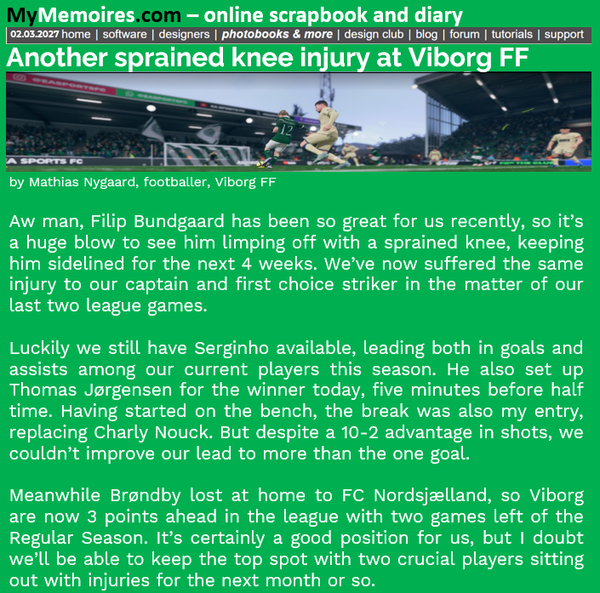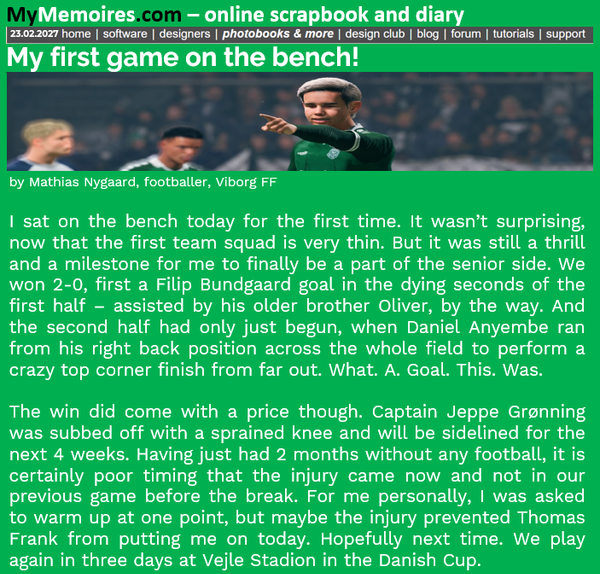 Okay, now I get it: we're following events at Viborg from the POV of the Nygaard-figure (youth player). Nice take, I was thinking of something similar (but rather someone from the staff, or management)
