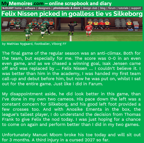 Okay, now I get it: we're following events at Viborg from the POV of the Nygaard-figure (youth player). Nice take, I was thinking of something similar (but rather someone from the staff, or management)
