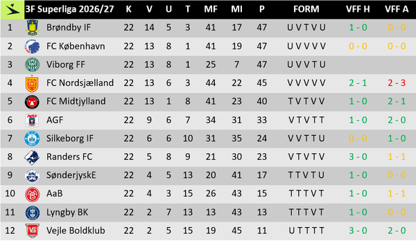 Oh no! So close to the beginning of the championship round, it increases by 75%!... I hope it's just a one-off. Brøndby now tied, København close behind.