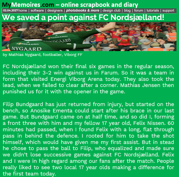 Okay, now I get it: we're following events at Viborg from the POV of the Nygaard-figure (youth player). Nice take, I was thinking of something similar (but rather someone from the staff, or management)