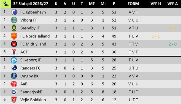 I do believe 2 wins, 2 draws and 1 defeat is good for a club like Viborg against these opponents. Maybe it's not enough for a league title, but I would still call it a successful outcome so far in the Championship Round.