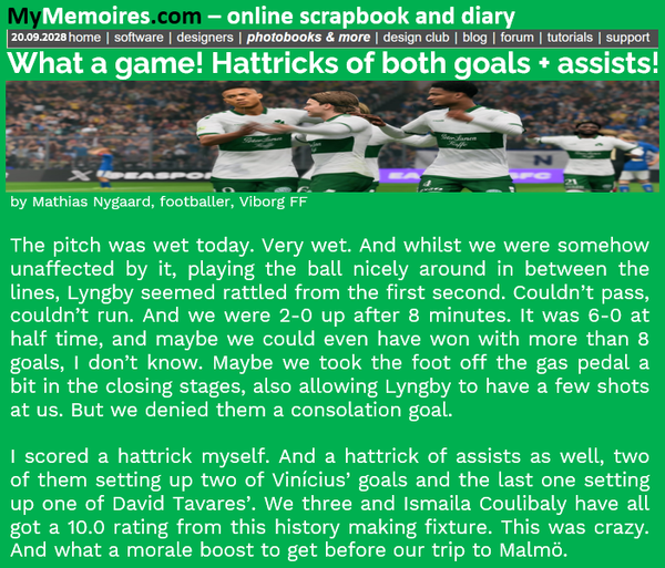 It's magic when it happens, isn't it? You're on a good flight of form. Now that from experience you can rely on your defense, you can focus on making goals more efficiently and well... 8-0! Also, a hattrick from the Nygaard boy: brilliant.