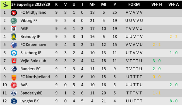 Season is going as planned: top 4 are heading towards championship round; a matter of time before København and Nordsjælland catch up (I think).