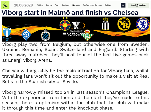 Yes, away games at Brugge and Betis will be difficult, whilst I shouldn't expect anything from hosting Chelsea either. So let's hope for a good start in Malmö and Kyiv.