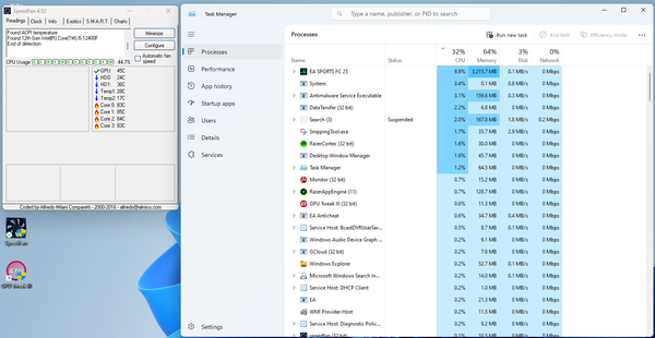 High temps after playing FC25 for a random amount of time (fans full speed, system idle process at 99%)