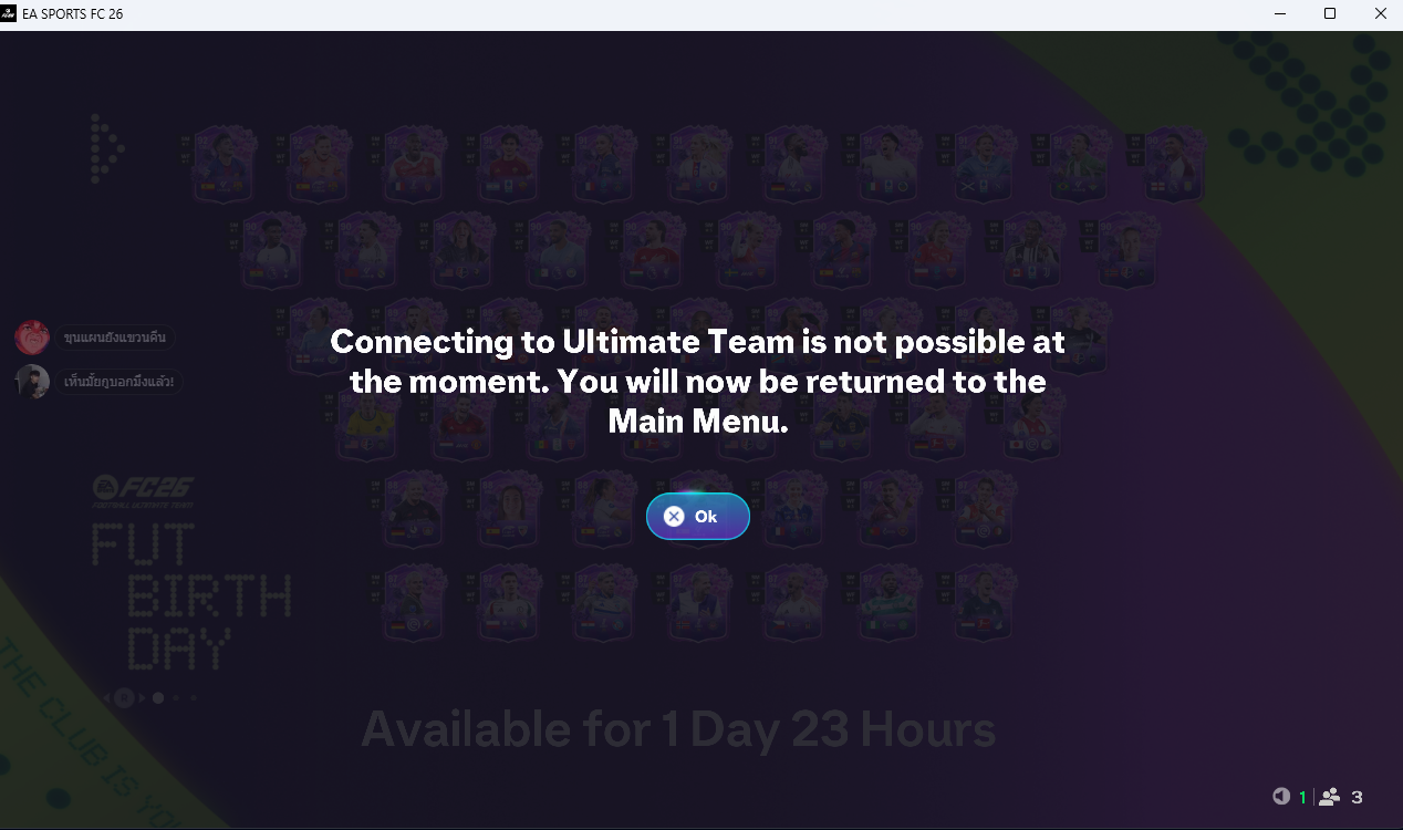 • Error Message: [Connecting to Ultimate Team is not possible at the moment.You will now be returned to the main menu]