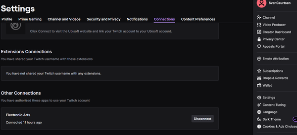 Ik heb mijn Twitch-account correct gekoppeld aan EA FC 25, zoals zichtbaar in de bijgevoegde screenshots. Ondanks de koppeling ontvang ik geen beloningen voor het kijken naar streams en andere Twitch Drops.