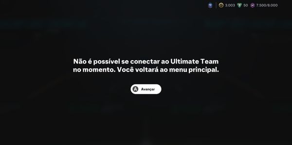 Estou com problemas ao acessar o menu de "metas de transfêrencias", consigo acessar a página de compras normalmente, o problema aparece ao tentar acessar as metas de transfêrencias, ao acessar aparece a seguinte mensagem "Não é possível se conectar ao Ultimate Team no momento" logo em seguida volta ao menu principal, segue a foto abaixo para melhor explicação.