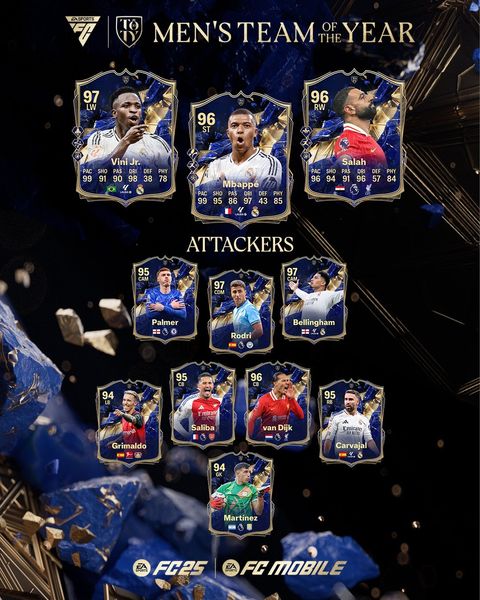 Escolhido pelos fãs, para os fãs. Apresentando o Time Masculino do Ano. Os atacantes desembarcam no #FC25 Ultimate Team em 17 de janeiro.