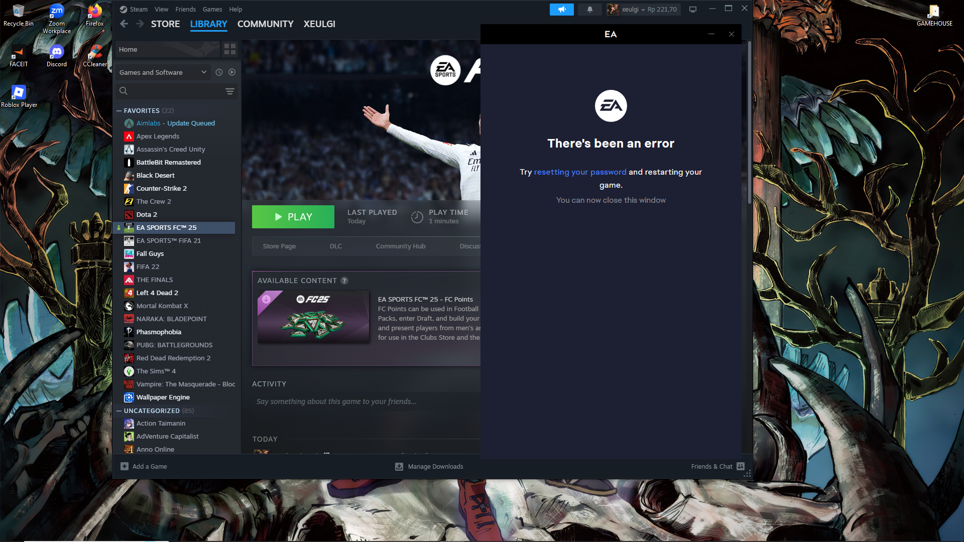 joyrv95Newcomer6 months agoCan't start fc25 on steamHello could you tell why there's an error while i starting the fc25 on steam? Screenshot (341).png2.2 MB
