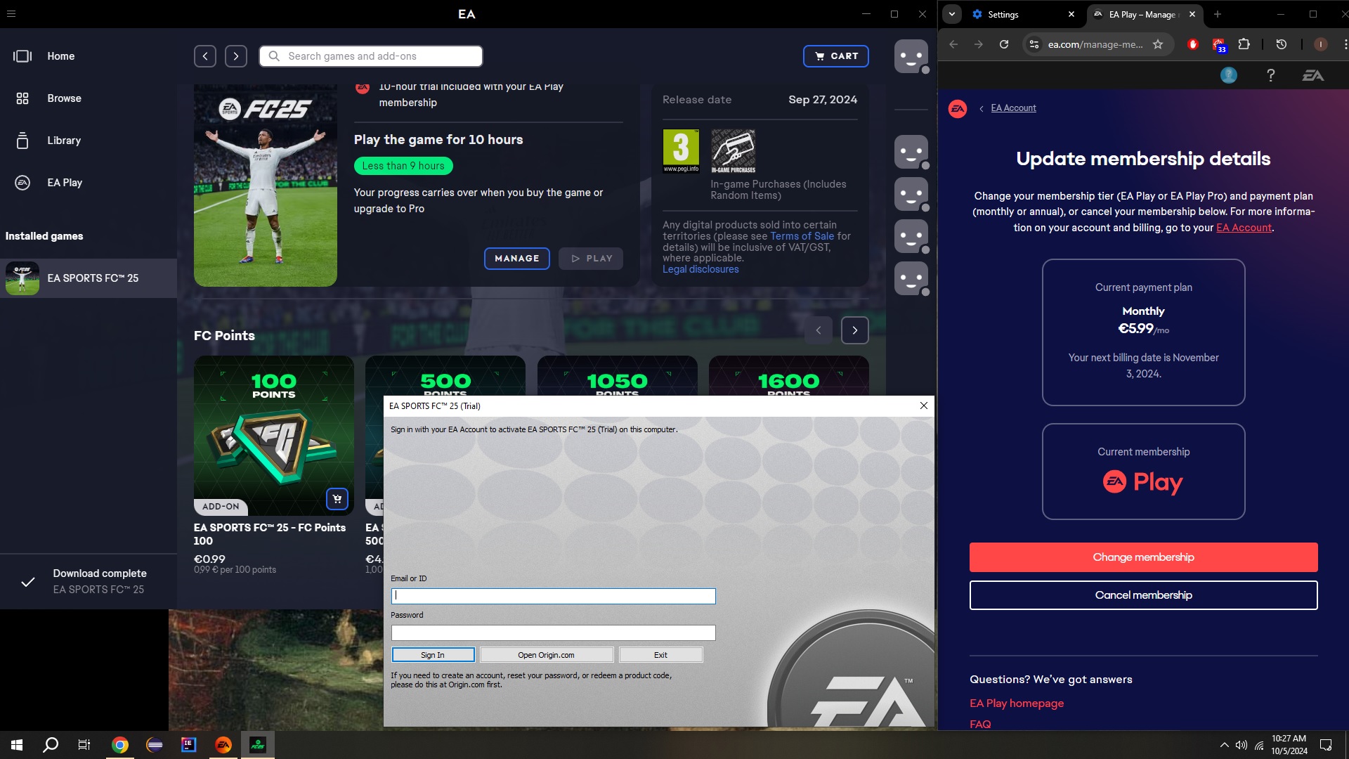 I bought EA Membership, played 1h of FC25 yesterday on PC and today I'm unable to launch the game, it requres FC25 Trial activation.