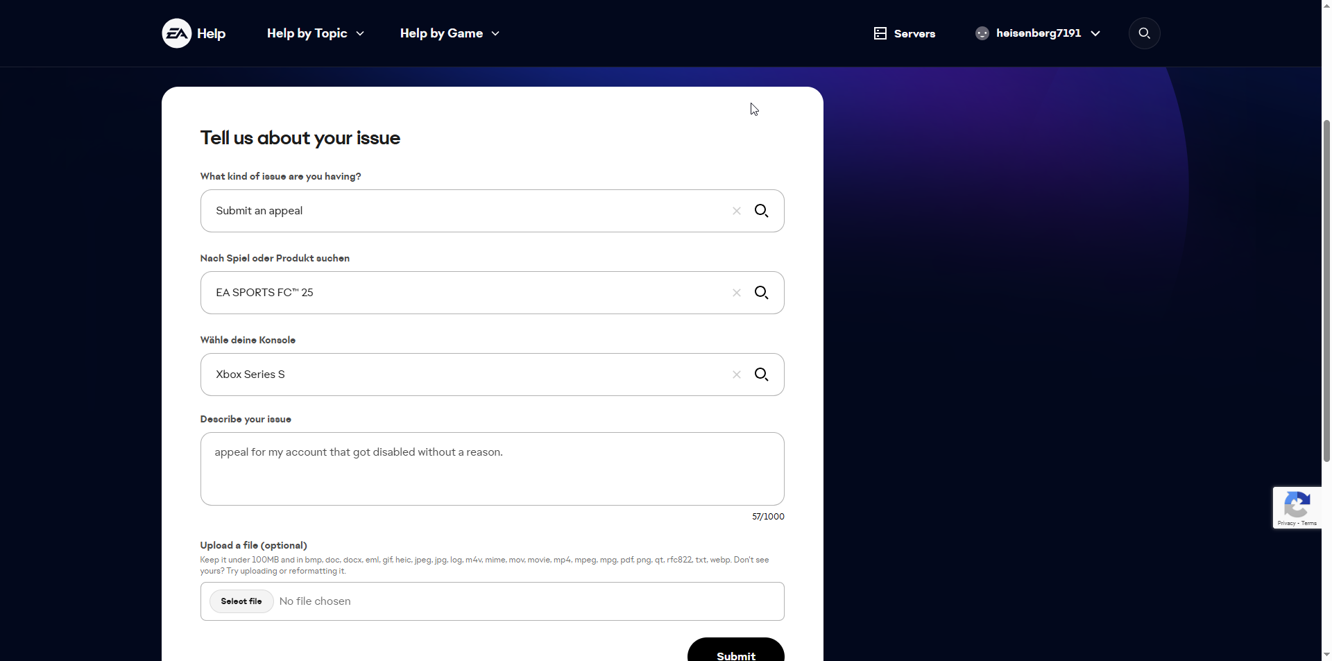 What's happening for you when you try to submit an appeal but can't? Is the button greyed out? Are you getting an endless loading loop? Could you pop up a screenshot of what's happening?
