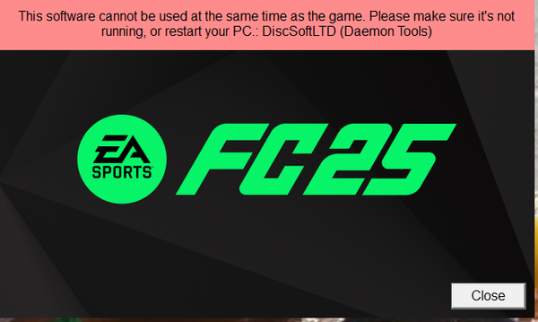 I’ve tried everything I could find on Reddit, EA forums, and even asked ChatGPT for help, but nothing worked. I tried running EA FC with nothing else running in the background, but it still didn’t help. If someone could help me with this, I would really appreciate it. Also, I have never downloaded Daemon Tools.