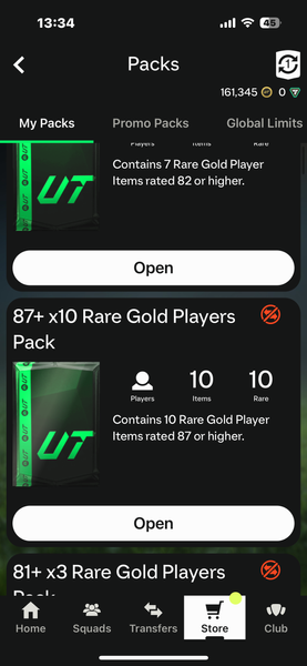 Hello everyone, I have a problem, some packs are not there when I enter the game on the console but in the companion app they are, I mean the last two packs from level 39,40 from season pass 6 and I want 50 packs from the sbc of 82+ combo upgrade (I don't think it matters much but anyway) please tell me if anyone else has this bug and if there is a solution to open it on my console.