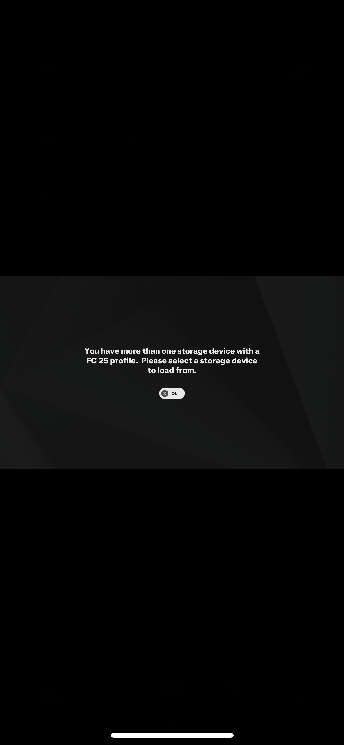 So I've just loaded up the Ultimate Edition of FC 25 for the first time, restarted the game and then the message 'You Have More Than One Storage Device With a FC 25 Profile. Please Select A Storage Device To Load From' has popped up, but it never gives me the option to choose the storage device.