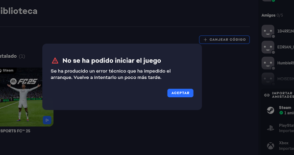 DESDE EL DIA DE AYER HE INTENTADO ABRIR EL JUEGO Y SE CIERRA SOLO, APENAS SALE LA PANTALLA NEGRA DE CARGA SE CIERRA Y MUESTRA EL SIGUIENTE MENSAJE, HACE 2 DIAS TODO ERA NORMAL Y DE LA NADA ME SURGIO ESTE PROBLEMA, ESPERO ME AYUDAN