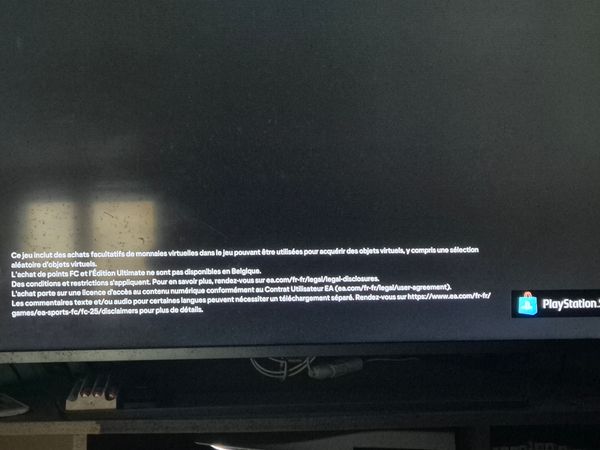 Bonjour je lance fifa et une page noir apparaît avec un texte de monnaies virtuelles et le logo PlayStation store en bas à droite que faire ?