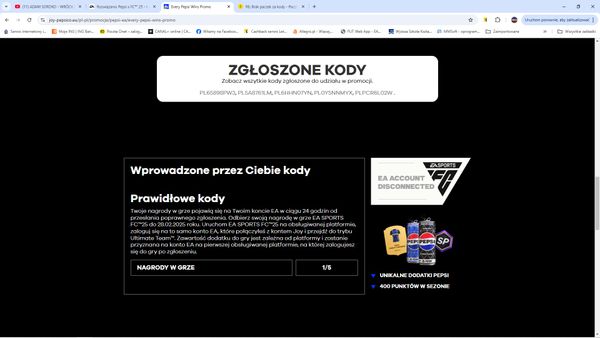 Problem z odebraniem nagród za kody z pepsi, pomimo że pokazuje się że nagrody w menu do odebrania