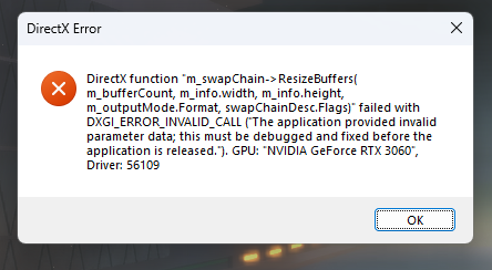 Esse erro indica que o aplicativo forneceu dados de parâmetro inválidos, se tiver usando algum tipo de overlays gráficos: Desative quaisquer overlays gráficos, como o da NVIDIA ou do Steam, que possam estar interferindo