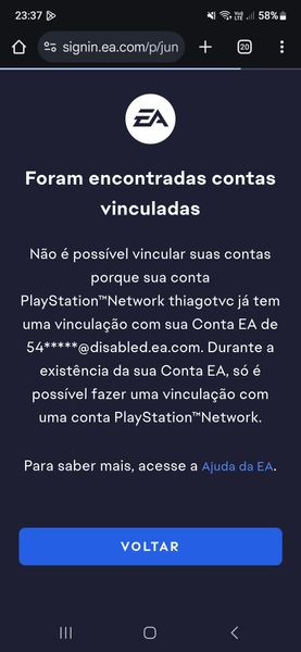 Estou com problemas para vincular minha conta Ea ao fc 25 ps4, está apresentando a mensagem que já está vinculado em um e-mail que não reconheço.