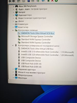 I found a solution to the problem. 1. Removing Deamon Tools. 2. In the control panel, go to the device manager and disable DAEMON Tools Lite Virtual SCSI Bus in the controller there, and I forgot where else I deleted it, there I need to find the device connected to Daemon Tools. That is, 1 is in the controller, and the other is in some other section.
