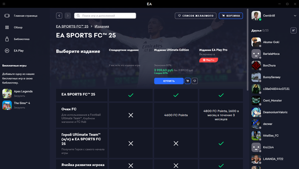 Что значит улучшу издание? Покупайте игру в ea app заново и играйте.
