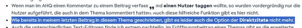 • Wie bereits in meinem letzten Beitrag in diesem Thema geschrieben, gibt es leider auch die Option der Direktzitate nicht mehr.