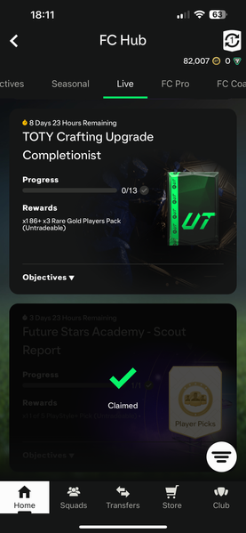 Yes…I completed that objective yesterday & it told me it was claimed & is showing as claimed in my objectives!?! When I went to Store to Redeem them before opening the other packs, it wasn’t where the ‘Picks’ normally are and I went straight to the Store.