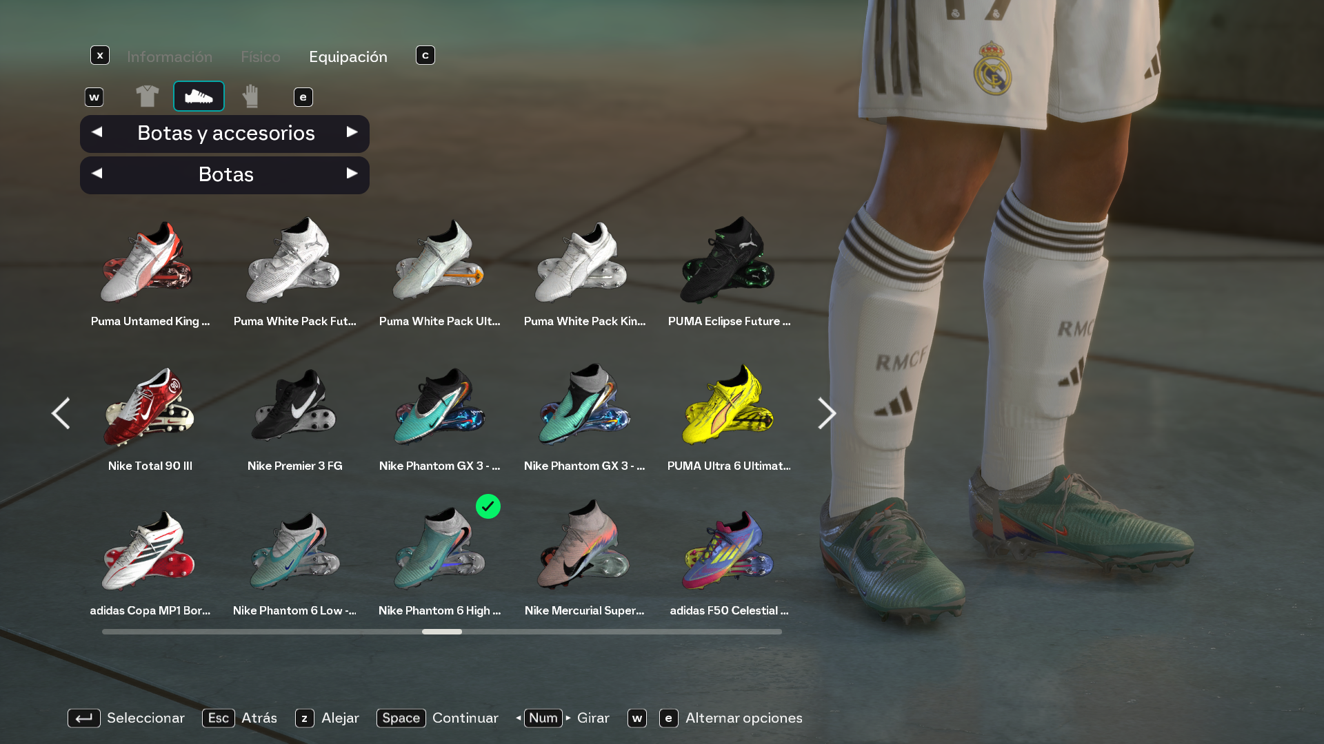 Al seleccionar las botas Nike Phantom 6 High en el menu de equipacion, el modelo 3D que aparece en el jugador no coincide con el icono.