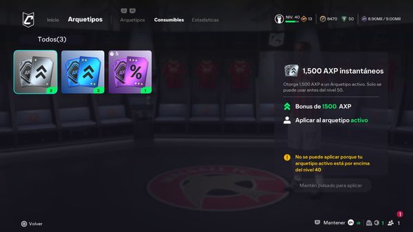 Hoy compre con 30k monedas de clubes un potenciador de XP instantaneo que claramente decia "Solo puede usarse hasta el nivel 50", mi arqueotipo es nivel 42, cuando fui a usar ese potenciador ponia que no puedo utilizarlo porque mi arqueotipo esta por encima de nivel 40, lo que contradice lo que dice el potenciasor a la hora de comprarlo.