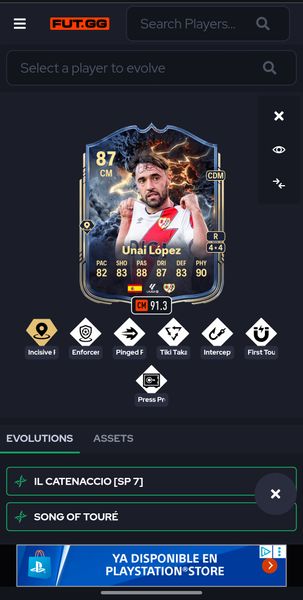 Compre la evolucion de "Song of Toure" para añadir el PS+ de pase incisivo y otros PS a mí Unai López De UECL Primetime.