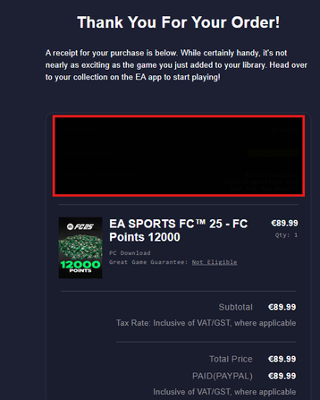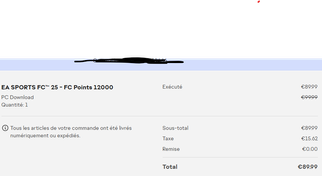 Quand je demande un remboursement de mes points inutiles sur FC 25 on me demande de fournir la preuve d'achat des points ce que je fournis (voir screenshoots) avec les numéros de commandes etc. On me répond que la commande est introuvable et que je dois vérifier le numéro de commande... C'est du grand n'importe quoi!