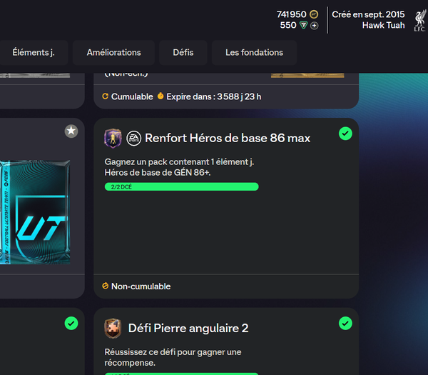 J’ai complété le pack « Héros de base de GEN 86+ », qui, selon la description, devrait garantir au moins un joueur avec une note générale (GEN) de 86 ou plus.