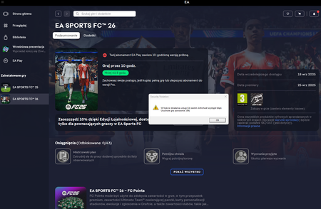 Witam mam problem właściwie z EA ANTICHEAT z nową wersja zaktualizowaną a mianowicie że gra po zagraniu meczu wyrzuca do pulpitu, próbowałem różnych rozwiązań odinstalowanie pobrania jeszcze raz zain...