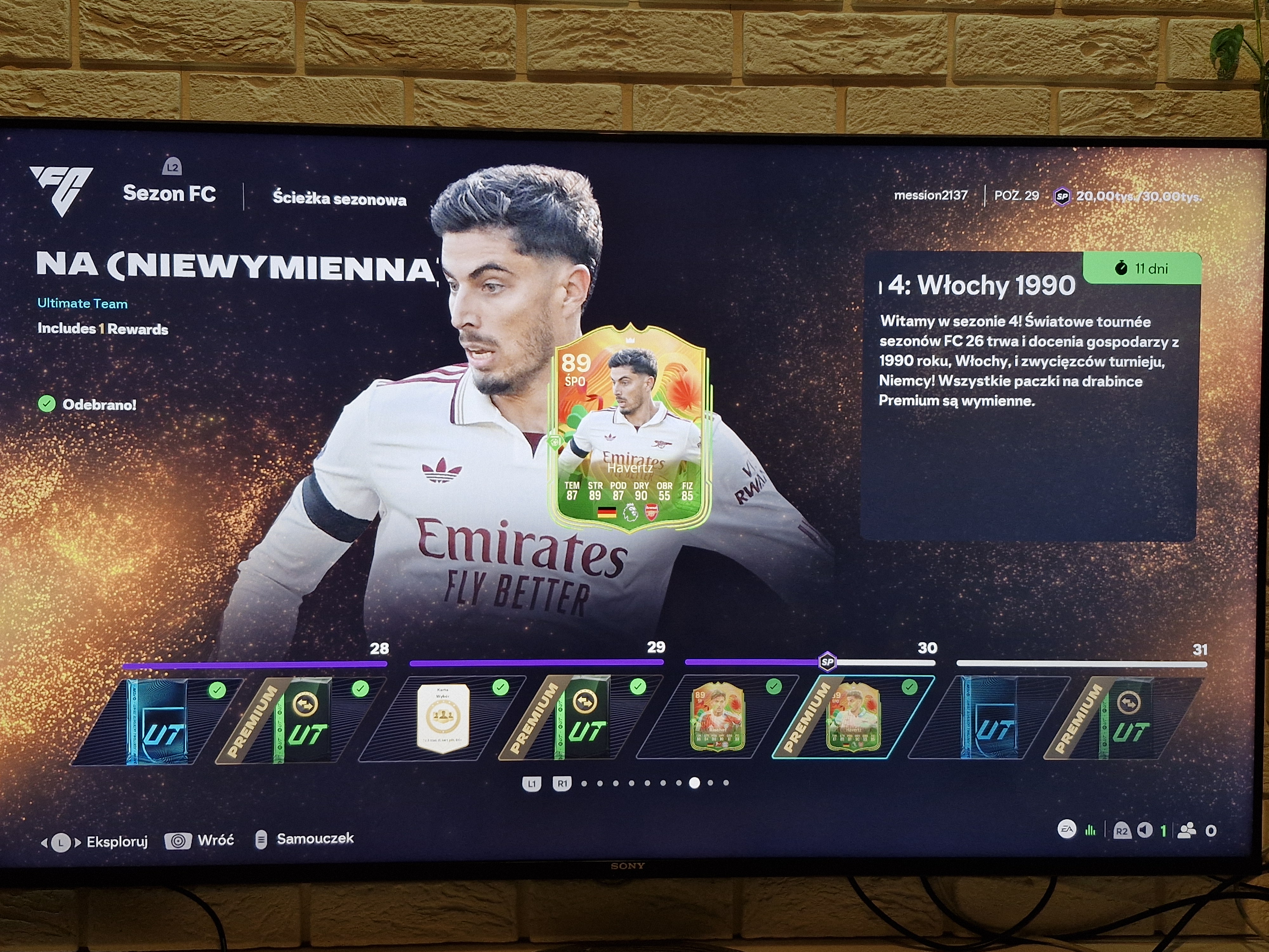 Mam wykupiony pakiet premium karnetu (ścieżki sezonowej w FC HUB) i po uzyskaniu poziomu 27 przyznało mi 3000 SP i przeskoczyłem 3 poziomy karnetu do przodu oraz normalnie mogłem odebrać nagrody, natomiast przy kolejnym razie jak włączyłem podgląd postępów ścieżki sezonowej, to cofnęło mi poziomy, tak jakby nie przyznało mi tych 3000 SP (a nagrody mam odebrane). I jest teraz śmieszna sytuacja, bo według gry mam odebrane nagrody za poziomy których nawet nie wbiłem. Załączam zdjęcie jak to u mnie wygląda.