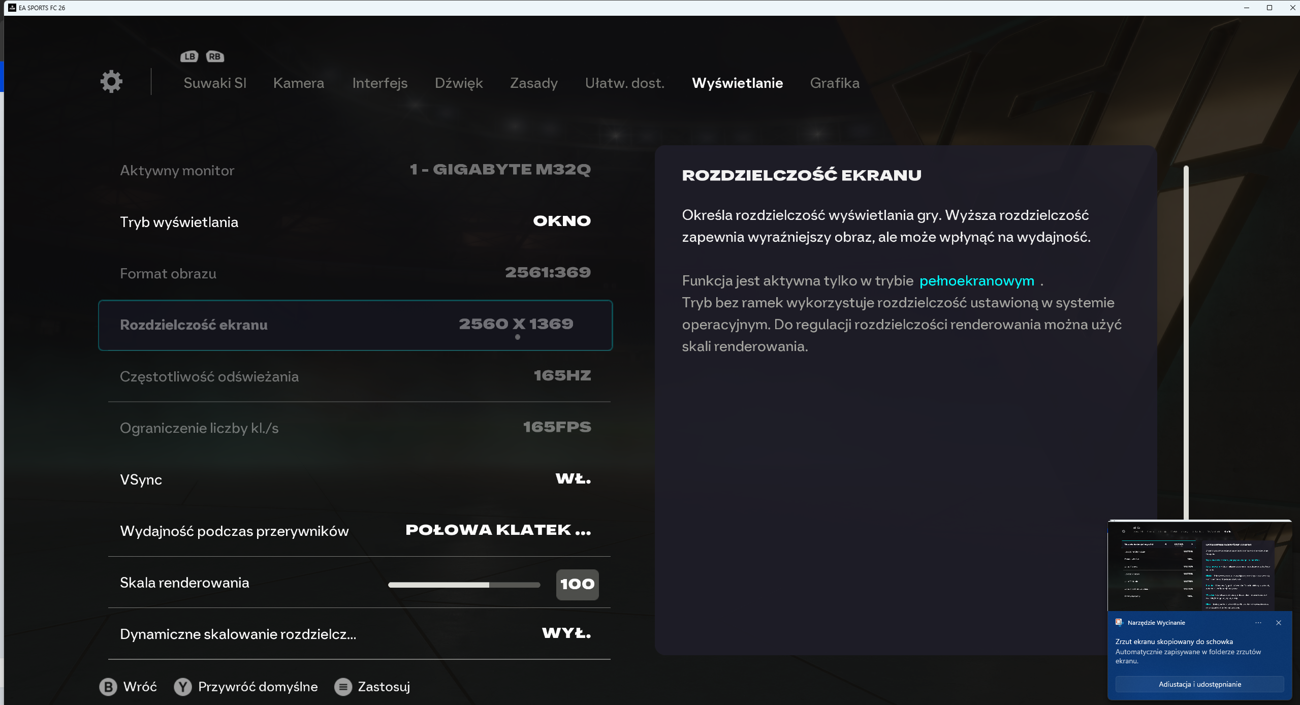 Dynamiczne skalowanie rozdzielczości: Wył.