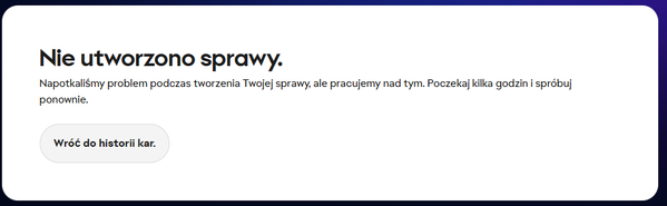 Probowalem sie odwolac kilkanascie razy lecz ciagle mi wyskakuje bląd ze nie udalo sie utworzyc sprawy i zeby sprobowac kilka godzin pozniej i nadal to samo wiec pisze tutaj.
