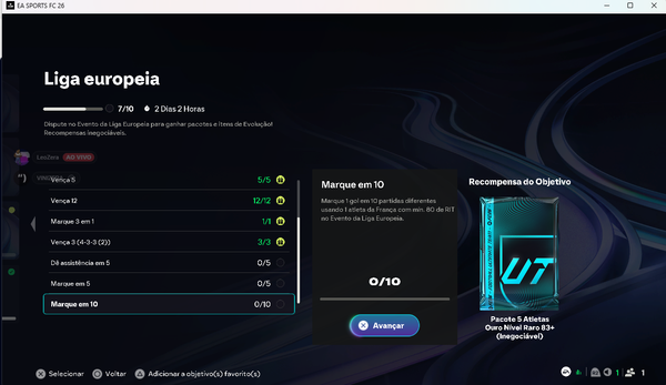 Recent DiscussionsAbandono de partidas no Temporadas NÃO DÁ A VITÓRIA Você está ganhando nas temporadas e simplesmente os caras abandonam as partidas e não contabilizam a vitória pra quem fica !!!! NAO PODE ISSO !!!!! Ao jogar COOP, o convidado não recebe todas as recompensas de amistoso COOP Ao jogar o modo amistoso LIGA EUROPEIA COOP, o convidado não recebe todas as recompensas. Seguem prints comprovando. Eu sou Figureba, meu parceiro de COOP é VINIZERACS Problemas de conexão Meu jogo simplesmente não conecta, depois que caiu minha Internet jogando o ultimate team, parece que bugou o servidor. Já resetei o moldem do wifi, troquei o DNS, troquei o IP, limpei o cache do Ps5...Não recebo a recompensa Ganhei o evento ao vivo chamado "copa do intervalo" no clubs e não recebi a recompensa de 20.000 XP instantâneo BUG Troféu Vale Pedir Música? Bom dia! Eu as 2 versões do jogo (ps4 e ps5) do EA Sports FC 26. Fiz o troféu Vale Pedir Música no PS5 normalmente, desbloqueando os 3 arquétipos, porém o troféu não pipoca na versão de PS4. Já comp...