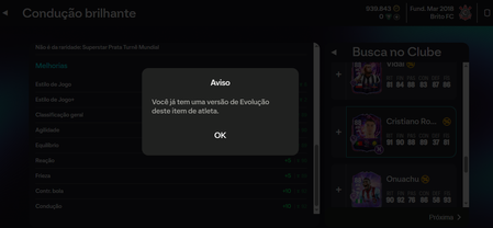 Olá, Coloquei uma evolução que está no Acampamento de treinamento, do aniversário fut. que são 1 evolução em 4 etapas de 20 e poucos minutos, porem na ultima etapa para não perder a química do meu jo...