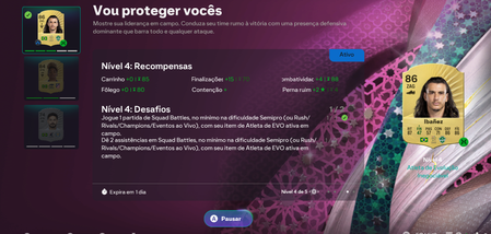 GASTEI 100K NESSA EVO E BUGOU NESSA ETAPA, DURANTE A PARTIDA APARECE Q EU COMPLETEI O DESAFIO MAS QUANDO TERMINA ELA N CONTA. A EVO VAI EXPIRAR EM 1 DIA, E AGORA????? só preciso dar 1 assistência...