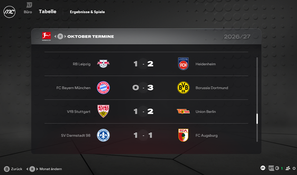 Building on that, it would be great if each individual match could be opened for more information as well. For example, when clicking on a match result in the league overview (especially in leagues where “detailed simulation” is enabled), a match detail screen could be shown. For other leagues, a simplified version would already be sufficient.