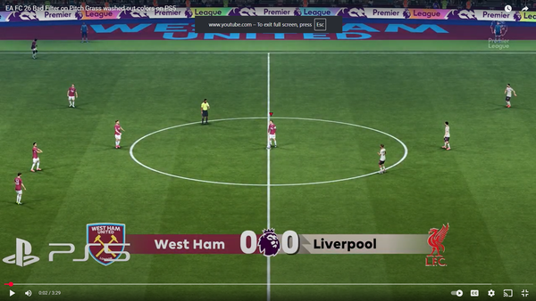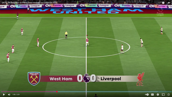 I’ve been playing FC games for years using the default Tele camera. In FC 26, I noticed that the grass color and mowing pattern look uneven from the bottom to the top of the screen. The upper side of the pitch appears completely washed out, and the striped grass pattern is almost invisible.
